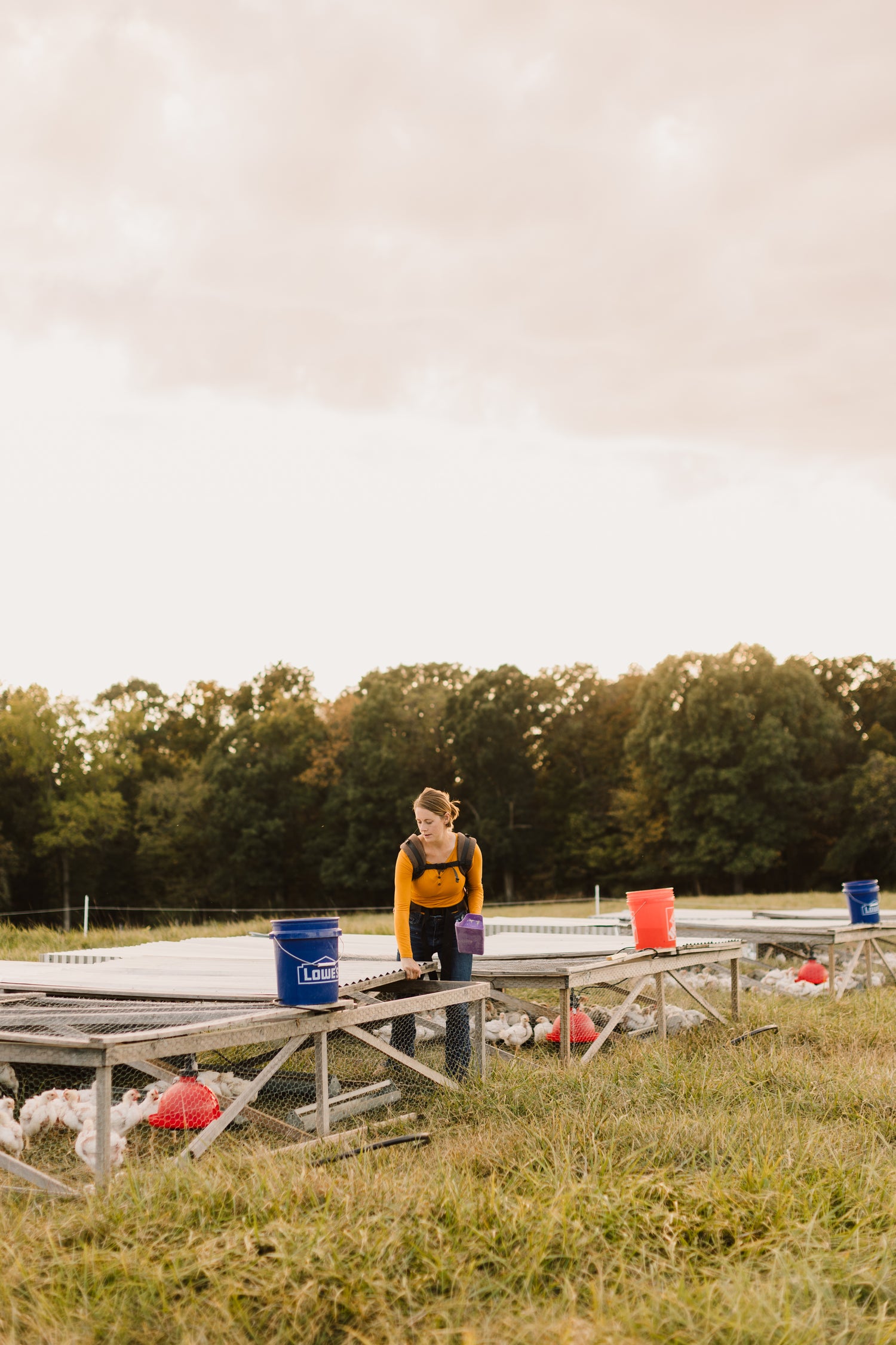 We purchase the chickens when they are just hatched and raise them on our farm. They are processed humanely in Northern MO at a small family owned processing plant.